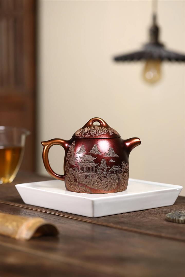 【作品介紹】此款壺形線條流暢,壺把,壺嘴,壺身壹氣呵成栩栩如生,是收藏把玩的好壺,泥料色澤古樸典雅,日久使用,漸露鋒芒,養成變化快,溫潤莊重,用其泡茶,使用的年代久,壺身就溫潤,泡出來的茶湯也就醇郁芳馨。