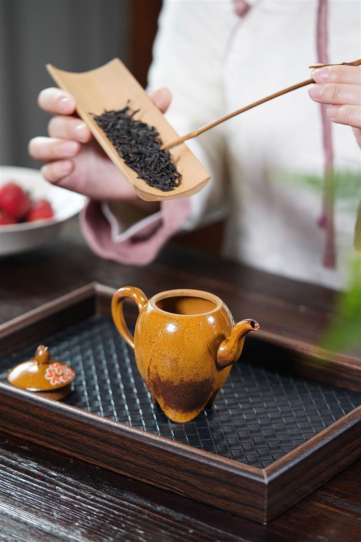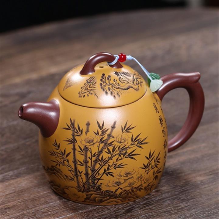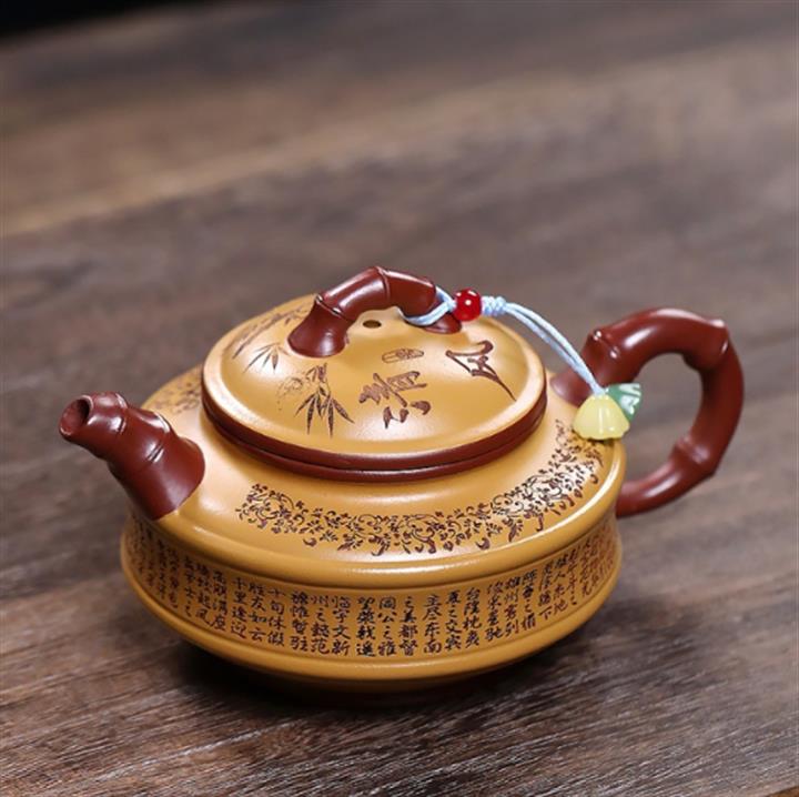 360cc原礦龍血砂雙色風竹琴韻茶壺POT8046