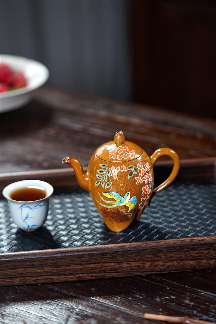 【作品介紹】此款壺形線條流暢,壺把,壺嘴,壺身壹氣呵成栩栩如生,是收藏把玩的好壺,泥料色澤古樸典雅,日久使用,漸露鋒芒,養成變化快,溫潤莊重,用其泡茶,使用的年代久,壺身就溫潤,泡出來的茶湯也就醇郁芳馨。