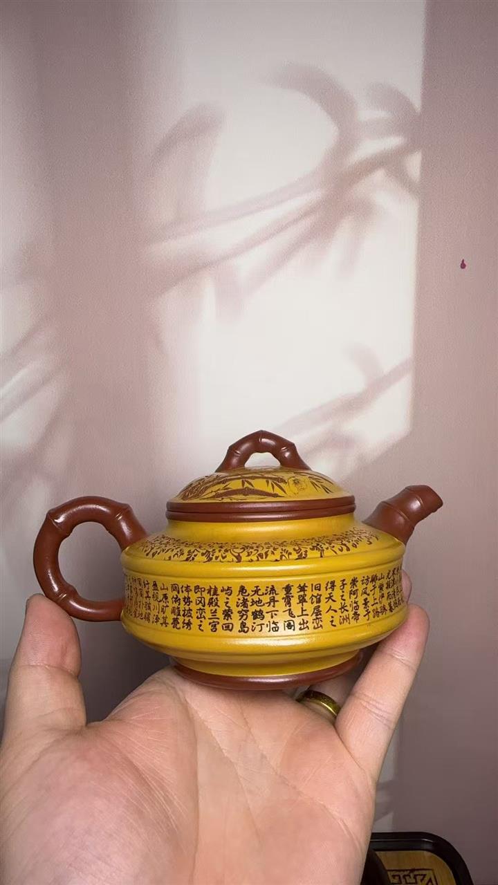 220cc原礦大紅袍雙色雙線竹鼓茶壺POT8865