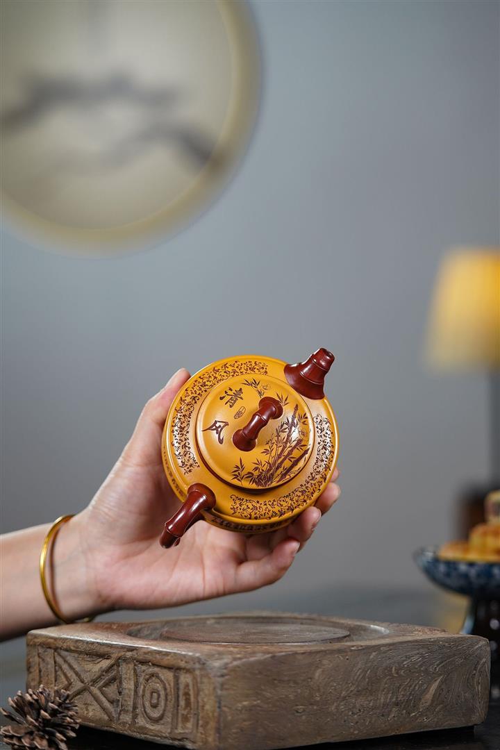 【作品介紹】此款壺形線條流暢,壺把,壺嘴,壺身壹氣呵成栩栩如生,是收藏把玩的好壺,泥料色澤古樸典雅,日久使用,漸露鋒芒,養成變化快,溫潤莊重,用其泡茶,使用的年代久,壺身就溫潤,泡出來的茶湯也就醇郁芳馨。