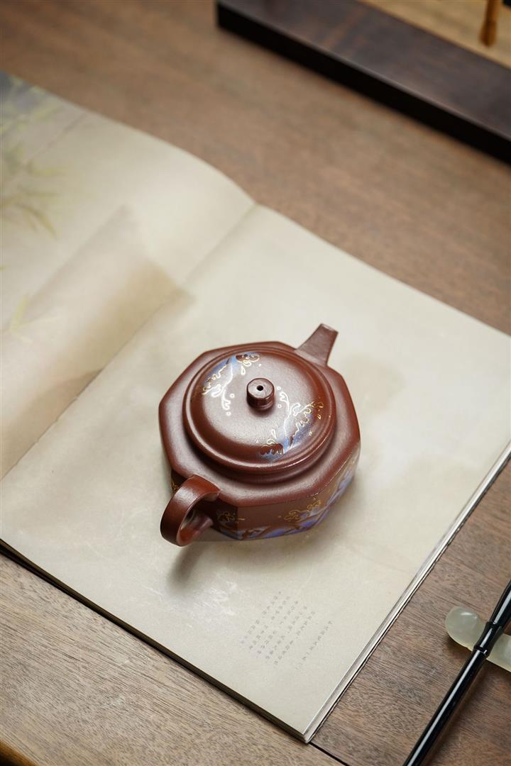 240cc原礦紫泥琺瑯彩八方扁德鐘茶壺POT8867