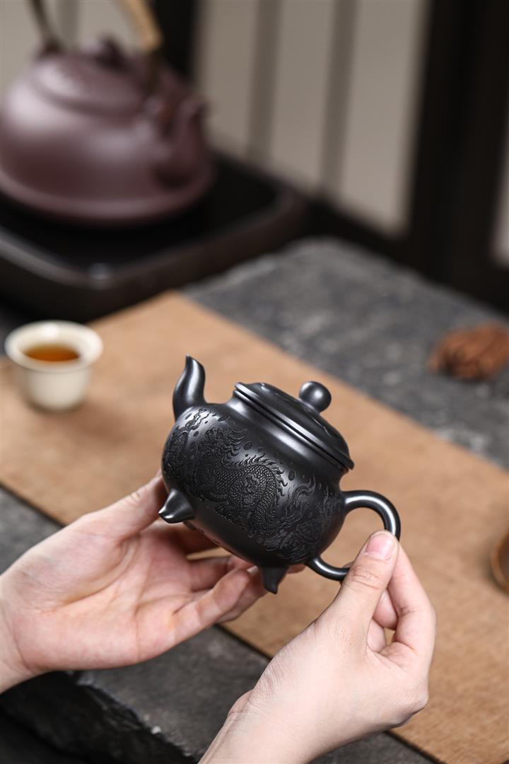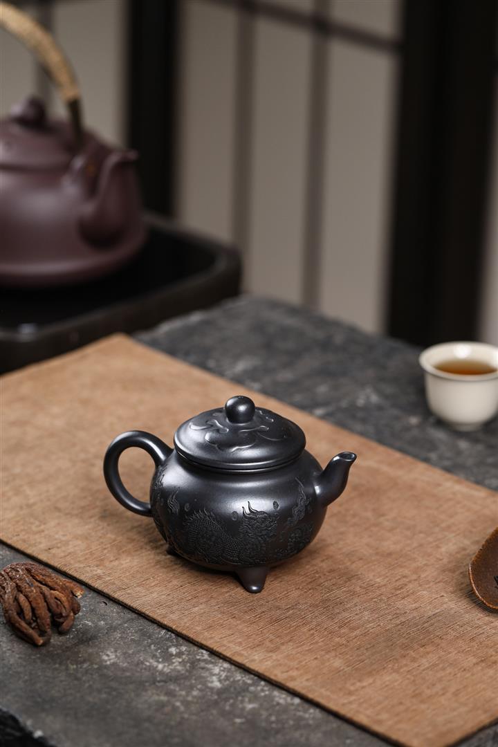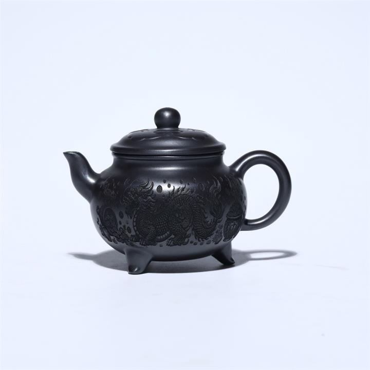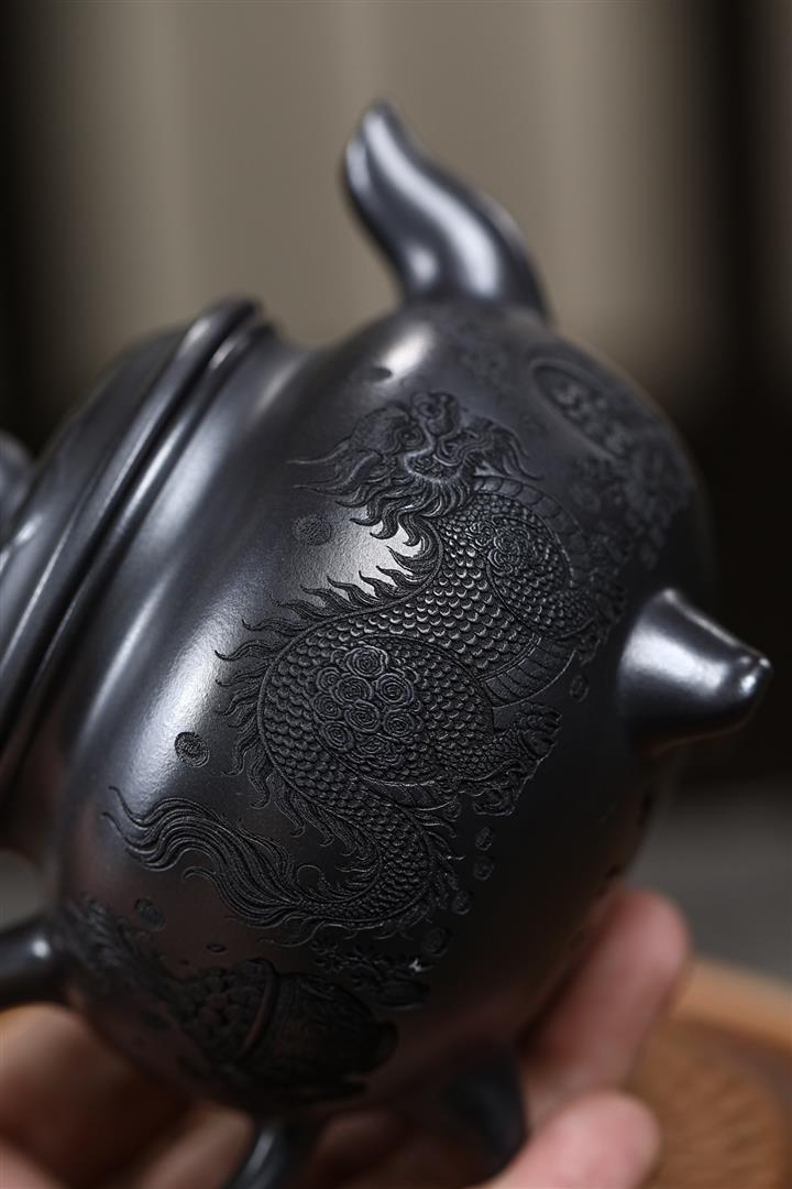 原礦墨綠泥描金高龍蛋茶壺POT7077