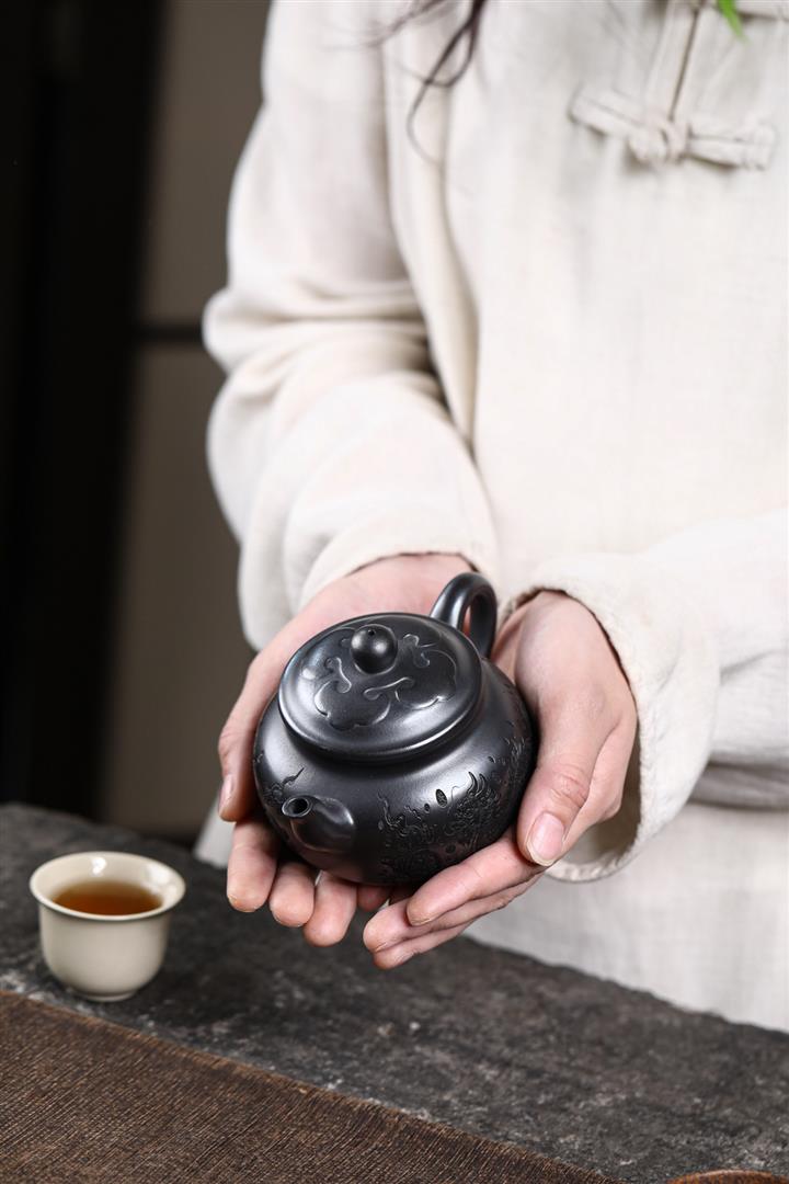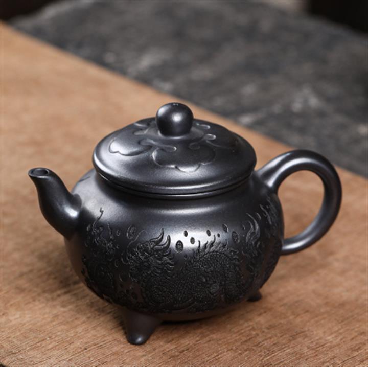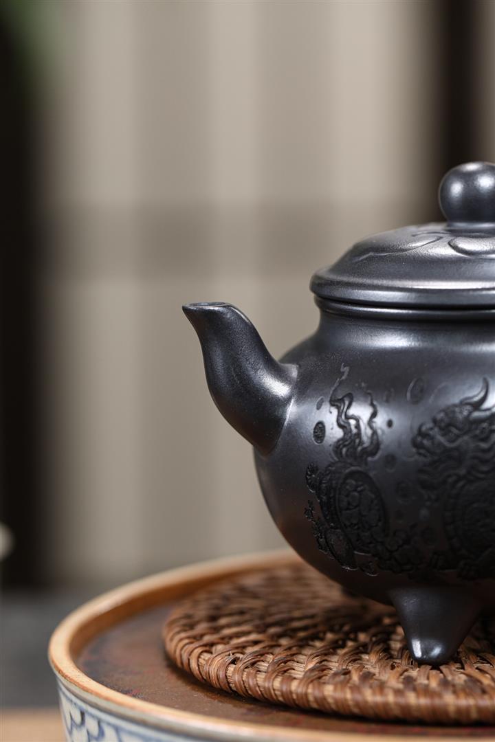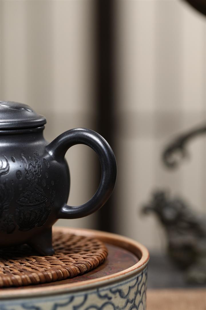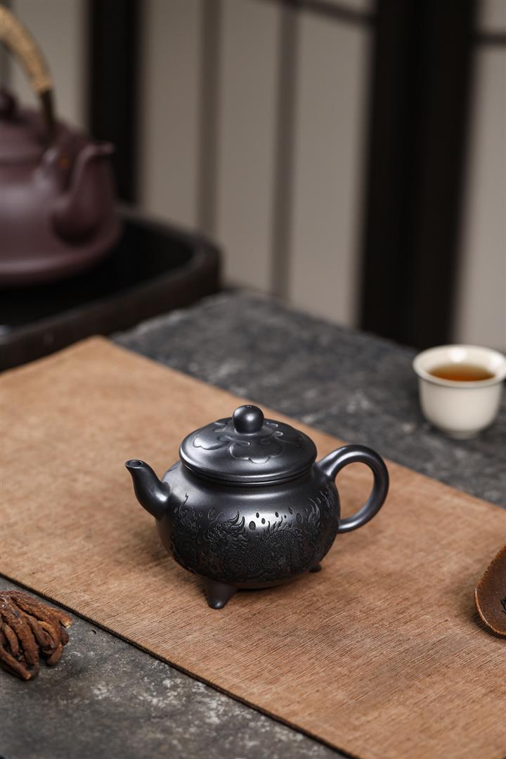 原礦墨綠泥描金高龍蛋茶壺POT7077