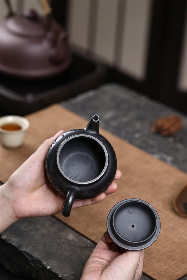 【作品介紹】此款壺形線條流暢,壺把,壺嘴,壺身壹氣呵成栩栩如生,是收藏把玩的好壺,泥料色澤古樸典雅,日久使用,漸露鋒芒,養成變化快,溫潤莊重,用其泡茶,使用的年代久,壺身就溫潤,泡出來的茶湯也就醇郁芳馨。