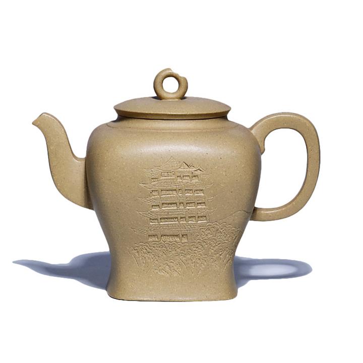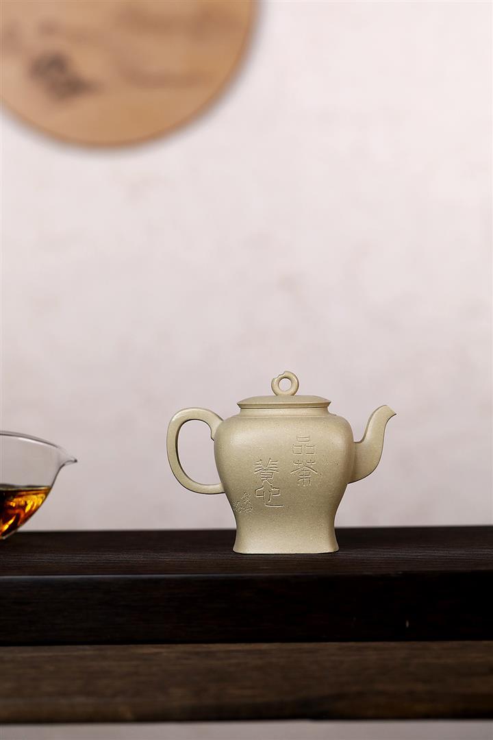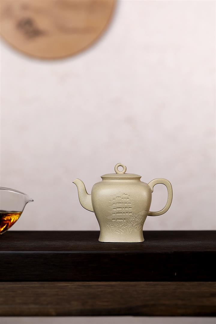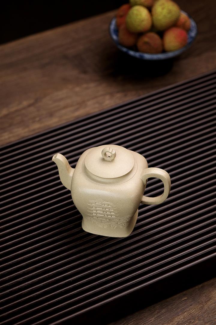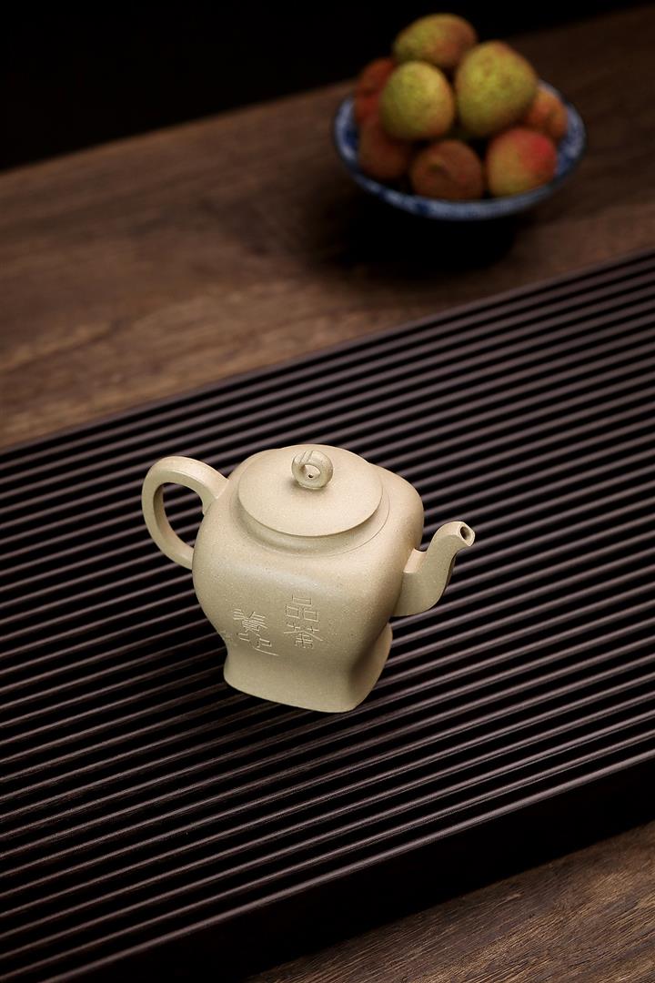 340cc原礦本山綠泥繪刻四方壺茶壺POT8887