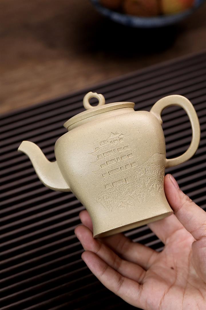 【作品介紹】此款壺形線條流暢,壺把,壺嘴,壺身壹氣呵成栩栩如生,是收藏把玩的好壺,泥料色澤古樸典雅,日久使用,漸露鋒芒,養成變化快,溫潤莊重,用其泡茶,使用的年代久,壺身就溫潤,泡出來的茶湯也就醇郁芳馨。