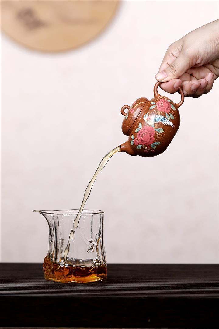 【泥料特點】砂土氣重,似淳實農民,日久使用,漸露鋒芒,養成變化,溫潤莊重。紫砂是壹種雙重氣孔結構的多孔性材質,氣孔微細,密度高。用紫砂壺沏茶,不失原味,且香不渙散,得茶之真香真味。紫砂使用越久,壺身色澤越發光亮照人,氣韻溫雅。紫砂壺長久使用器身會因撫摸擦拭,變得越發溫潤光澤。