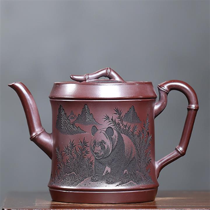 650cc原礦石紅熊貓圓竹泡茶壺POT9305