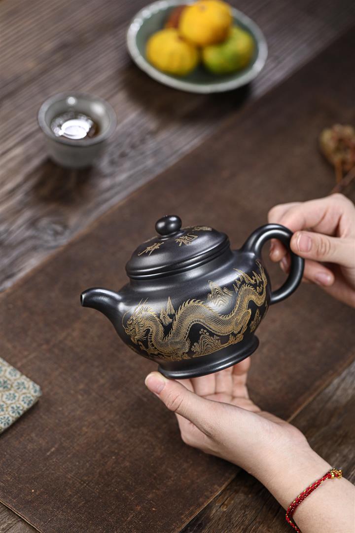 【作品介紹】此款壺形線條流暢,壺把,壺嘴,壺身壹氣呵成栩栩如生,是收藏把玩的好壺,泥料色澤古樸典雅,日久使用,漸露鋒芒,養成變化快,溫潤莊重,用其泡茶,使用的年代久,壺身就溫潤,泡出來的茶湯也就醇郁芳馨。