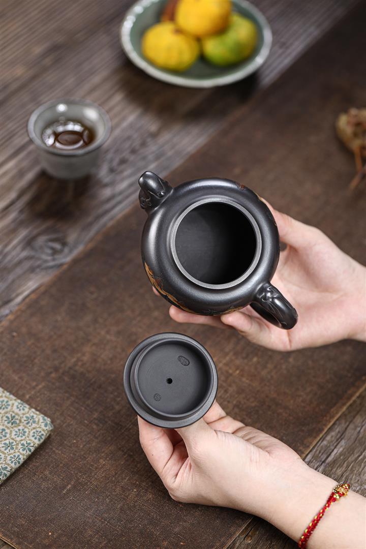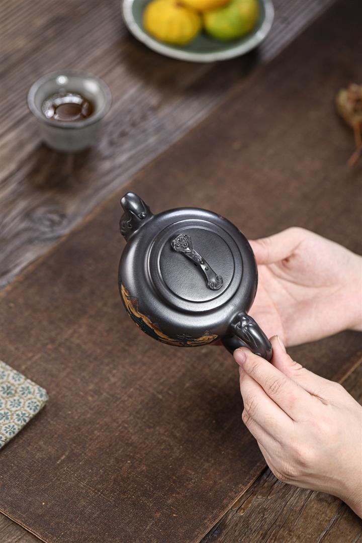 原礦黑金砂雙魚石瓢茶壺POT7114