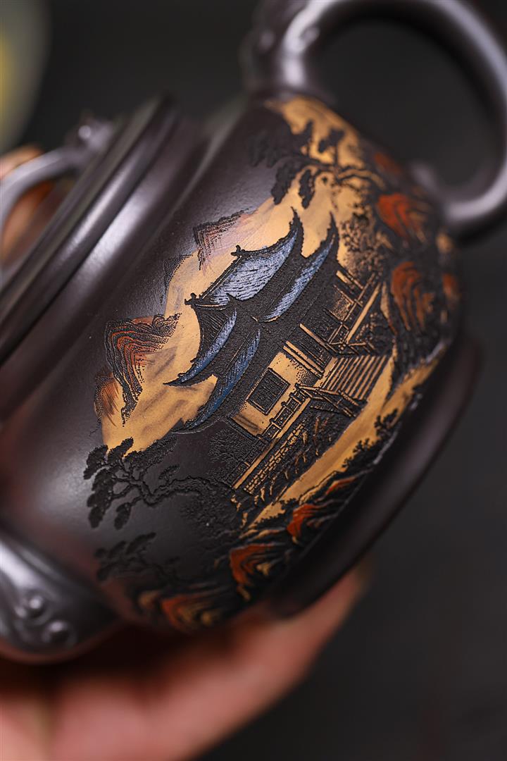 原礦雲霧沈香泥刻繪宮燈茶壺POT7108