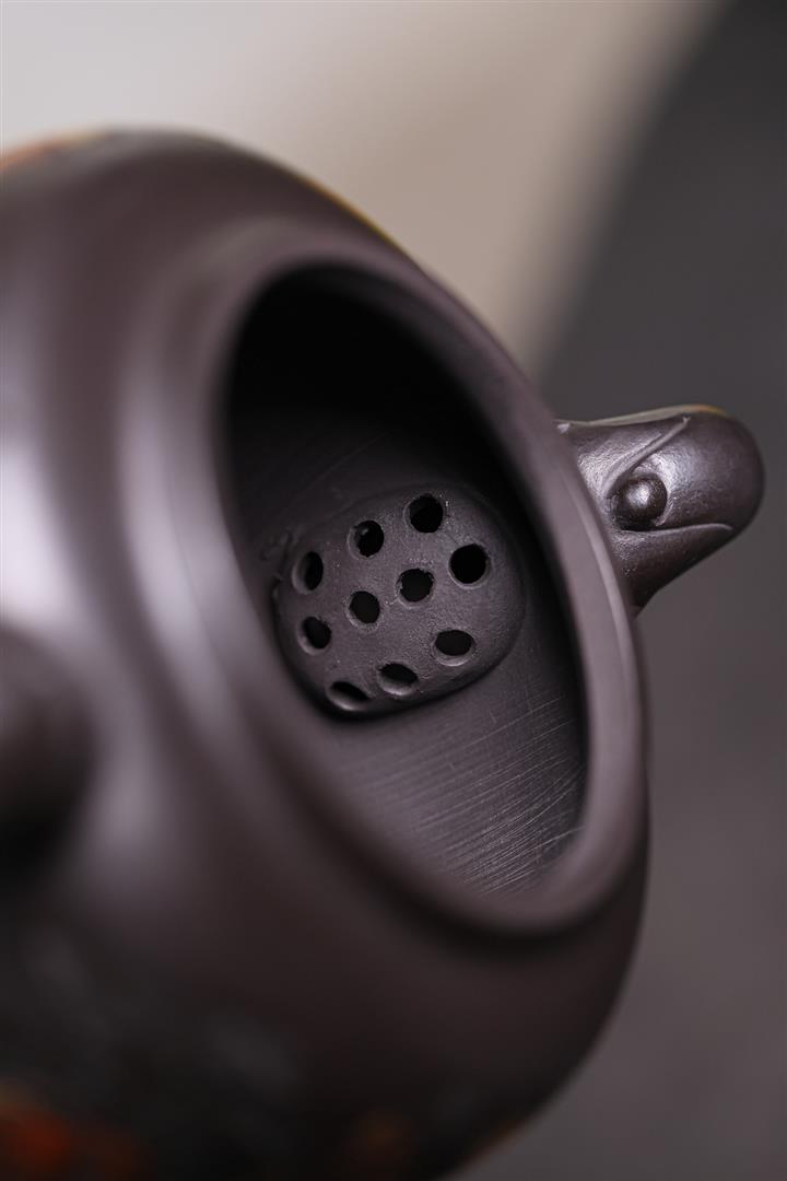【作品介紹】此款壺形線條流暢,壺把,壺嘴,壺身壹氣呵成栩栩如生,是收藏把玩的好壺,泥料色澤古樸典雅,日久使用,漸露鋒芒,養成變化快,溫潤莊重,用其泡茶,使用的年代久,壺身就溫潤,泡出來的茶湯也就醇郁芳馨。