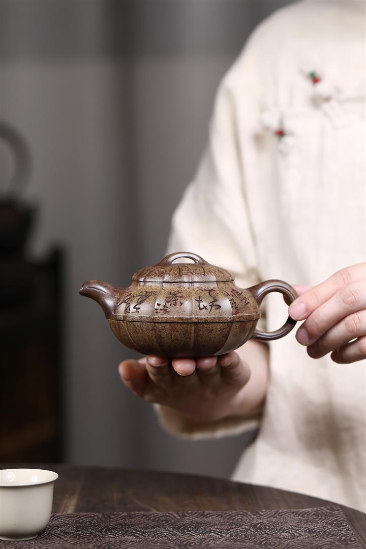 【作品介紹】此款壺形線條流暢,壺把,壺嘴,壺身壹氣呵成栩栩如生,是收藏把玩的好壺,泥料色澤古樸典雅,日久使用,漸露鋒芒,養成變化快,溫潤莊重,用其泡茶,使用的年代久,壺身就溫潤,泡出來的茶湯也就醇郁芳馨。