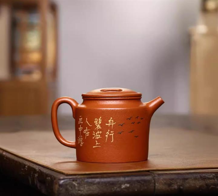 240cc原礦紅皮龍泥繪高德鐘茶壺POT8957