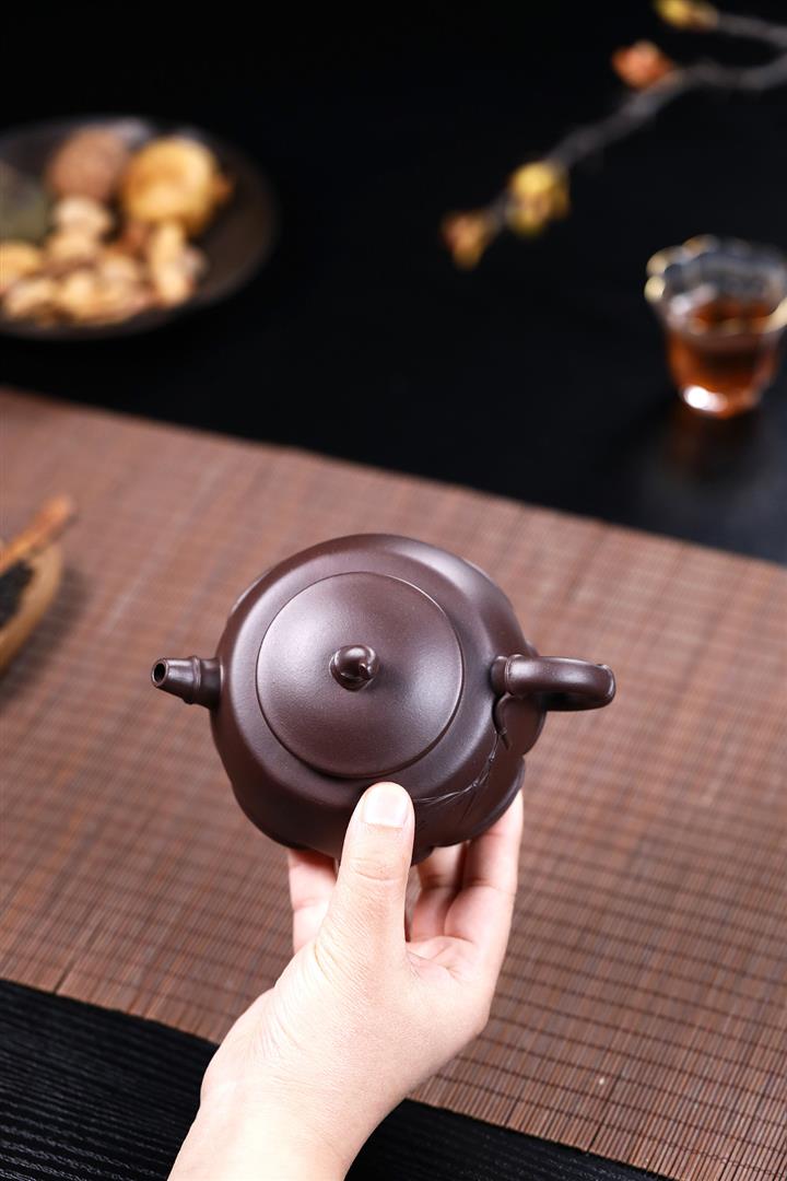 【泥料特點】砂土氣重,似淳實農民,日久使用,漸露鋒芒,養成變化,溫潤莊重。紫砂是壹種雙重氣孔結構的多孔性材質,氣孔微細,密度高。用紫砂壺沏茶,不失原味,且香不渙散,得茶之真香真味。紫砂使用越久,壺身色澤越發光亮照人,氣韻溫雅。紫砂壺長久使用器身會因撫摸擦拭,變得越發溫潤光澤。