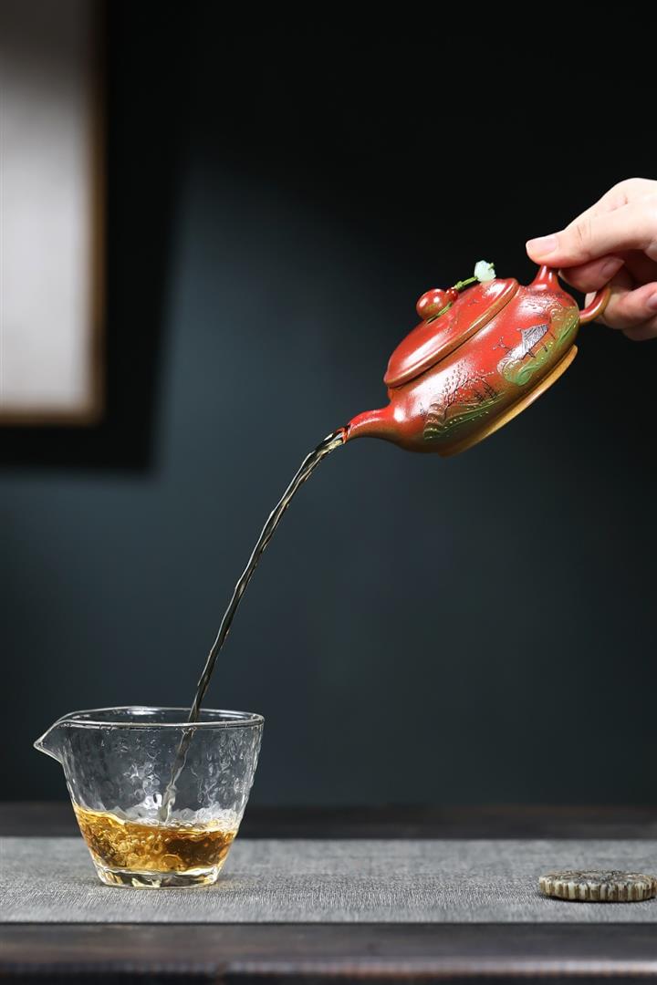 【泥料特點】砂土氣重,似淳實農民,日久使用,漸露鋒芒,養成變化,溫潤莊重。紫砂是壹種雙重氣孔結構的多孔性材質,氣孔微細,密度高。用紫砂壺沏茶,不失原味,且香不渙散,得茶之真香真味。紫砂使用越久,壺身色澤越發光亮照人,氣韻溫雅。紫砂壺長久使用器身會因撫摸擦拭,變得越發溫潤光澤。