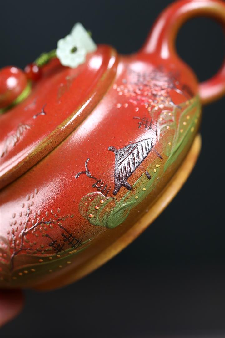 原礦墨綠泥描金銀湖石東亭茶壺POT7303