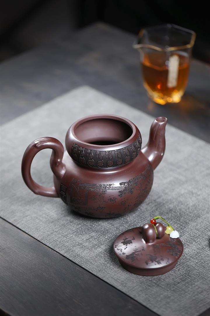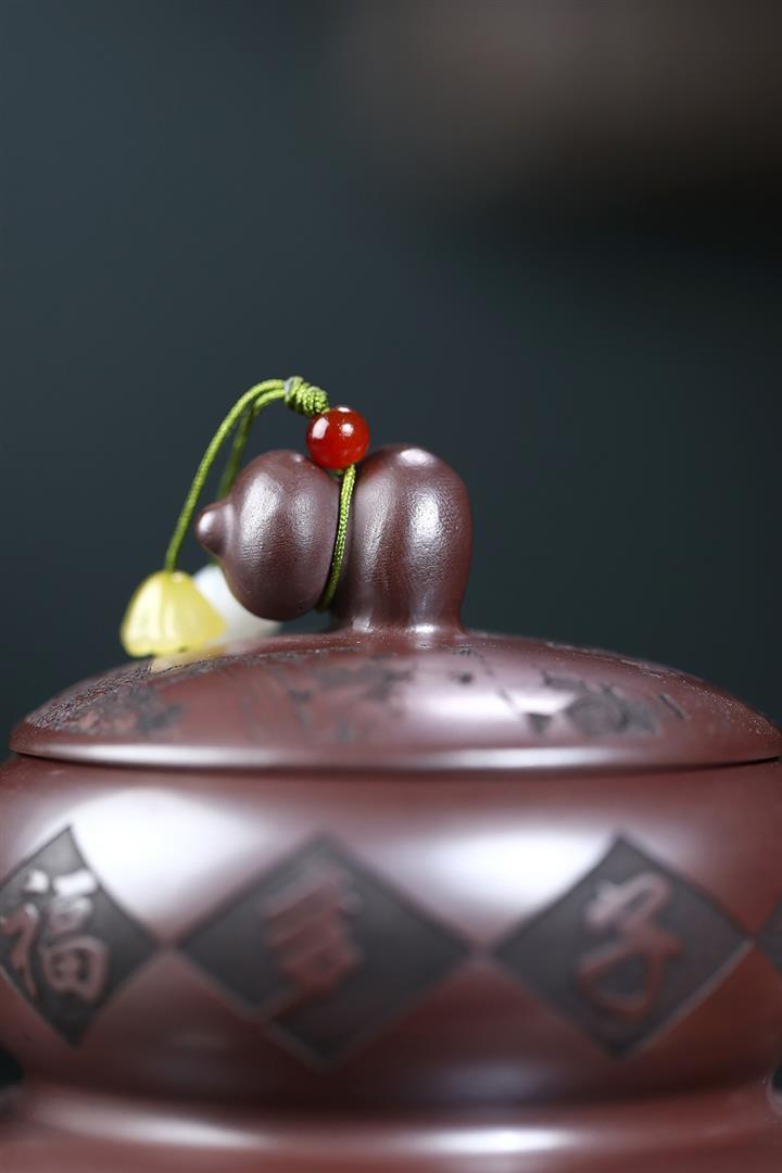 650cc原礦石紅泥滿刻百子納福葫蘆POT9001