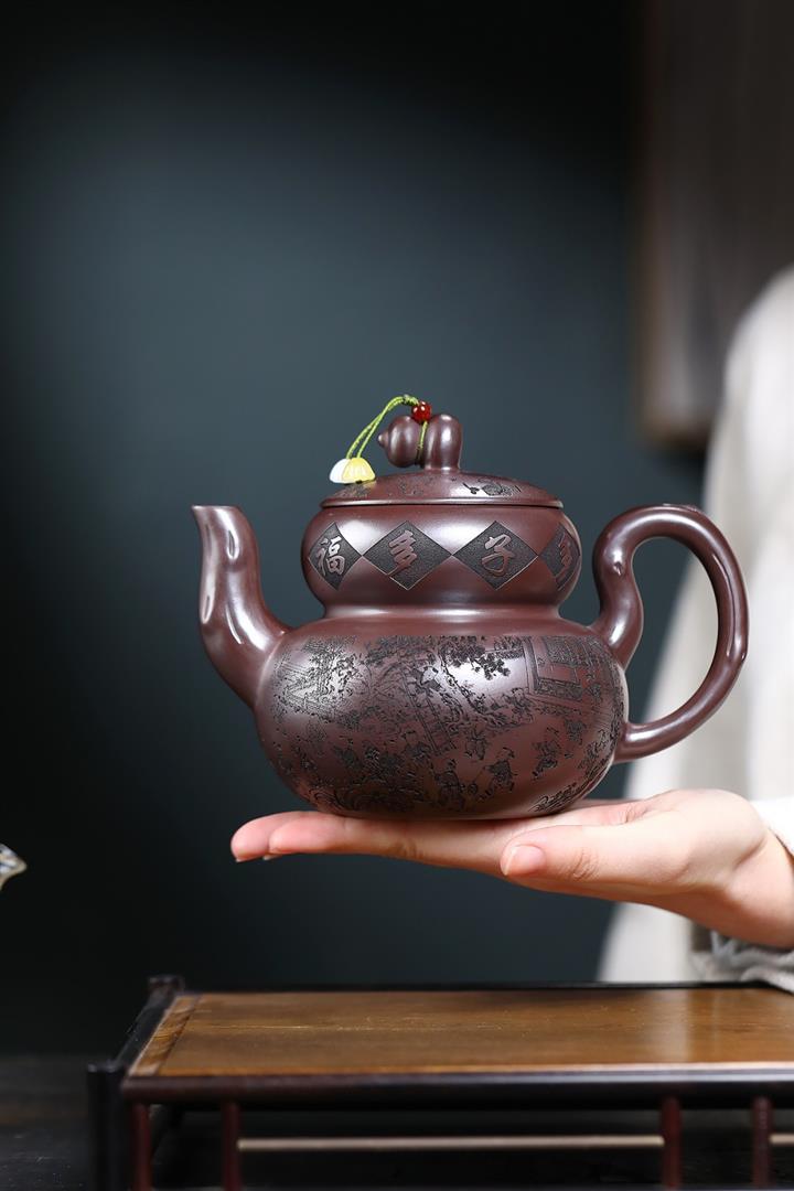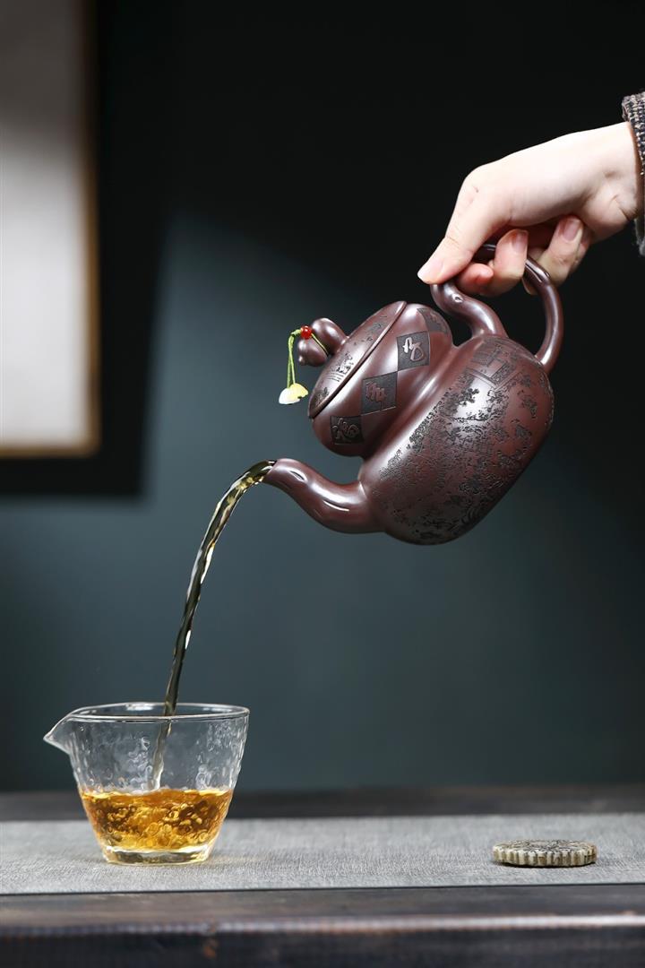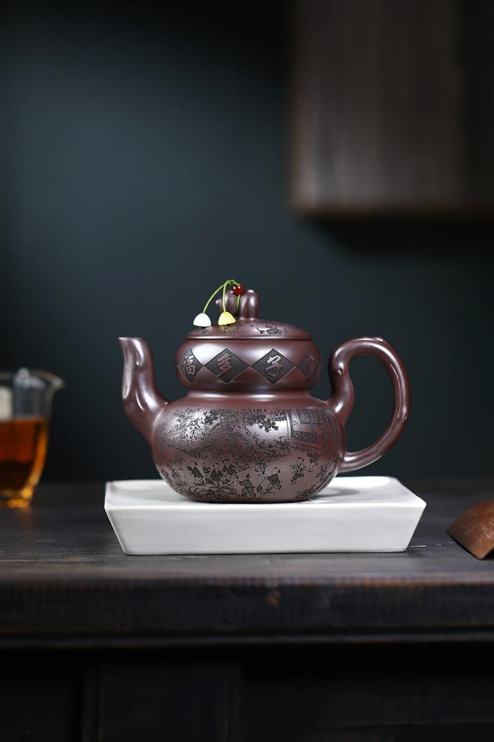 【作品介紹】此款壺形線條流暢,壺把,壺嘴,壺身壹氣呵成栩栩如生,是收藏把玩的好壺,泥料色澤古樸典雅,日久使用,漸露鋒芒,養成變化快,溫潤莊重,用其泡茶,使用的年代久,壺身就溫潤,泡出來的茶湯也就醇郁芳馨。