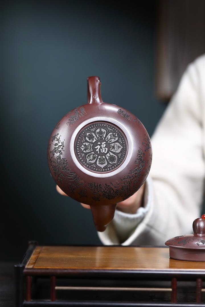 650cc原礦貝殼燒段泥滿刻龍鳳呈祥茶壺POT9046