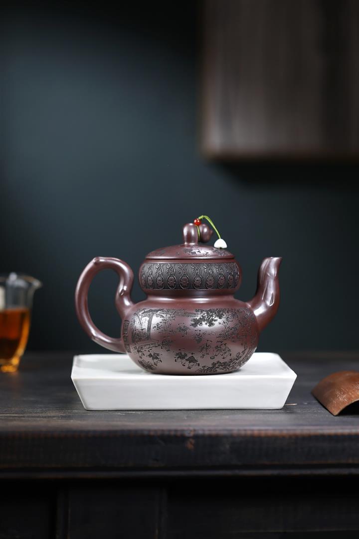 140cc原礦小紅泥泥繪花鳥邀月茶壺POT9048