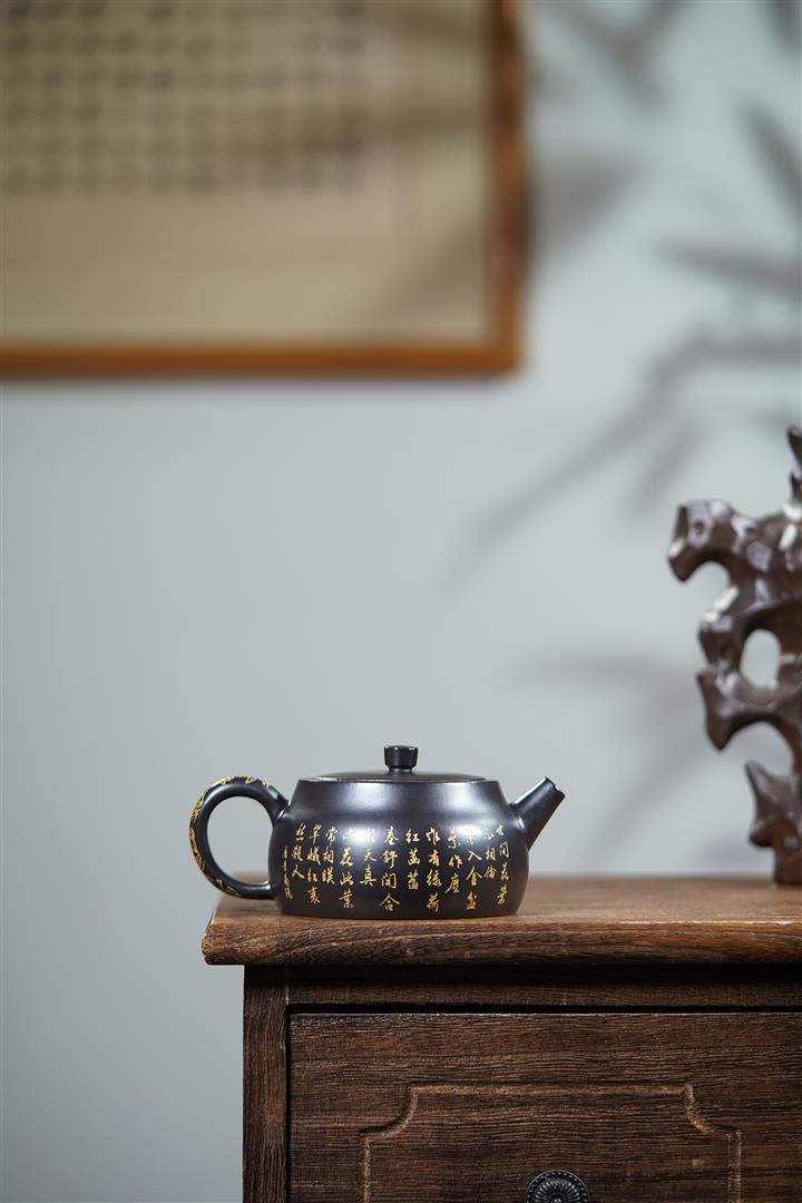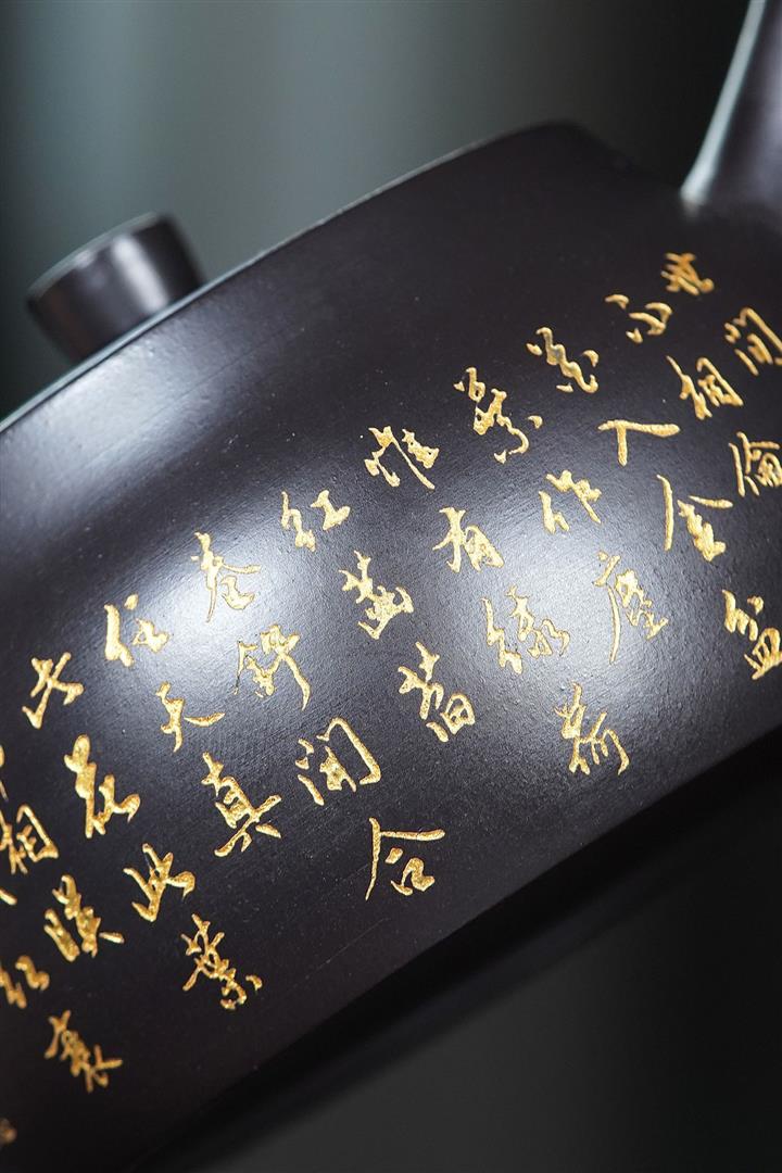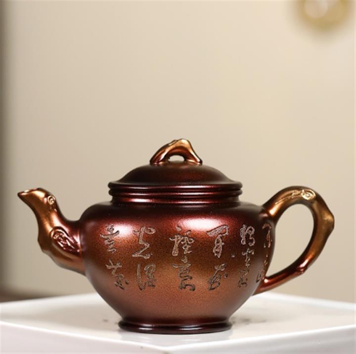400cc原礦綠泥貝克燒金砂桃源秦權茶壺POT8474