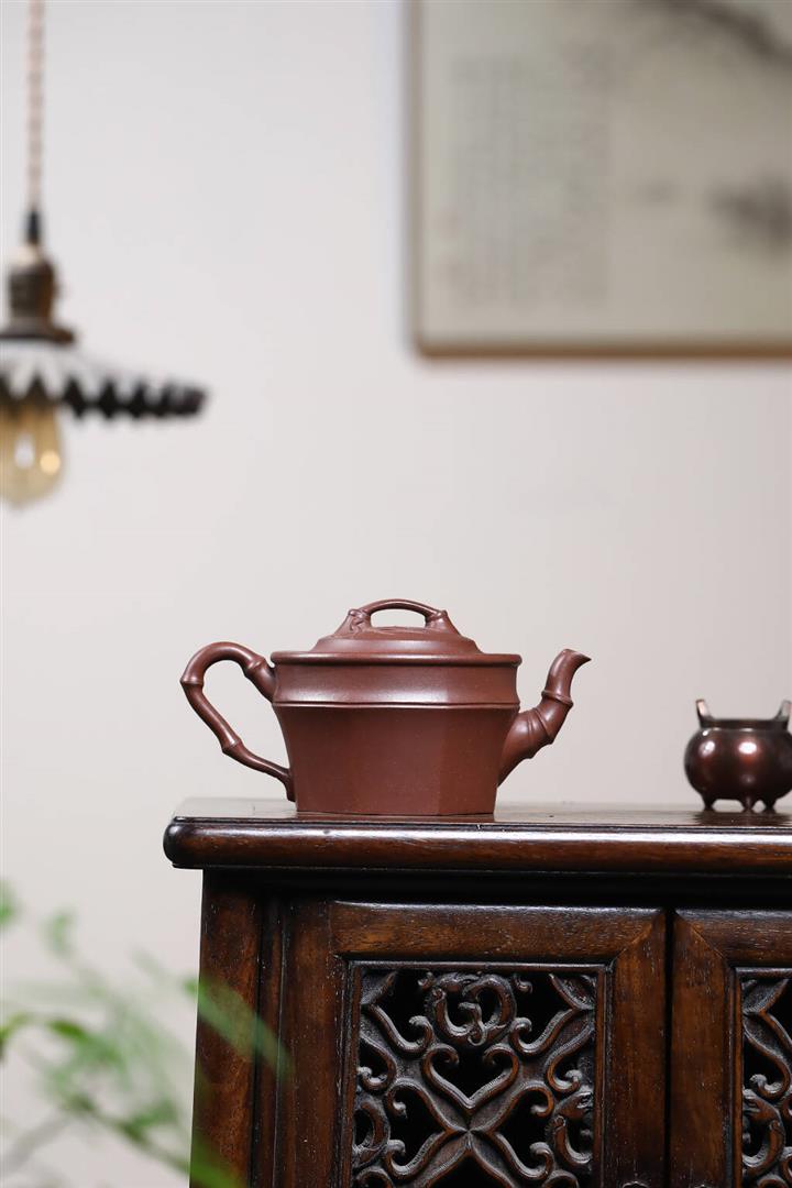 350cc原礦紫泥筋紋葵菱茶壺POT8733