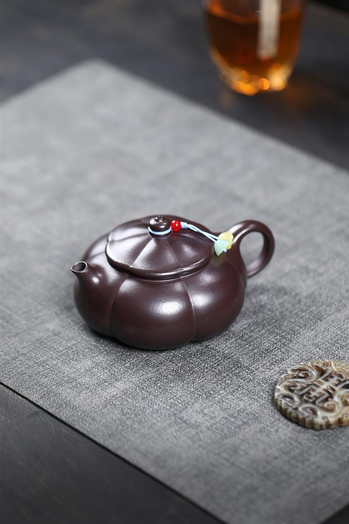 200cc原礦紫泥光素筋紋紫玉寒江茶壺茶壺POT9053