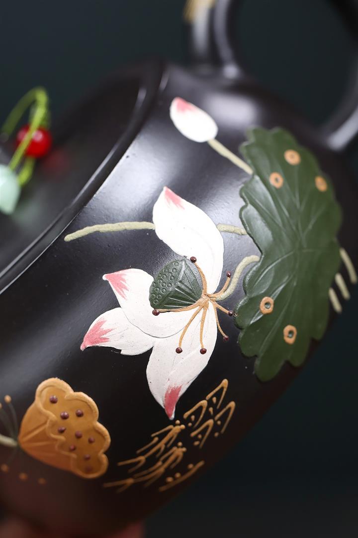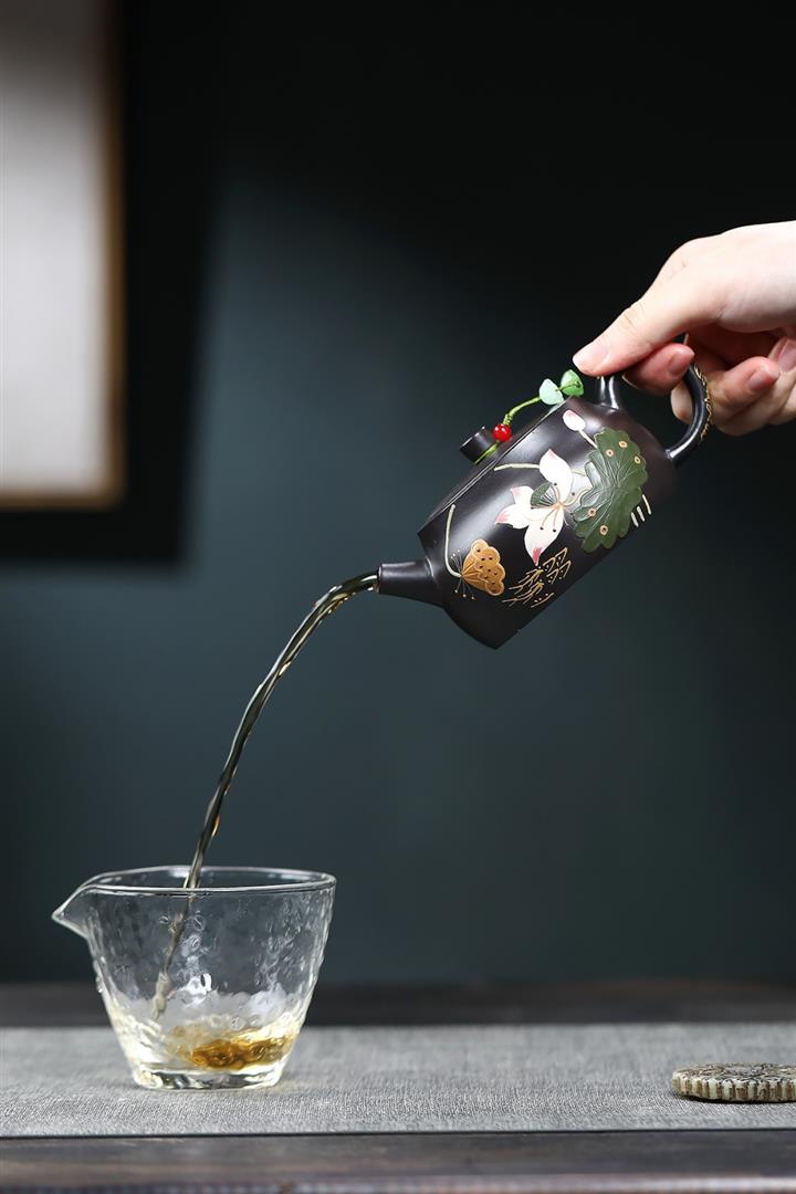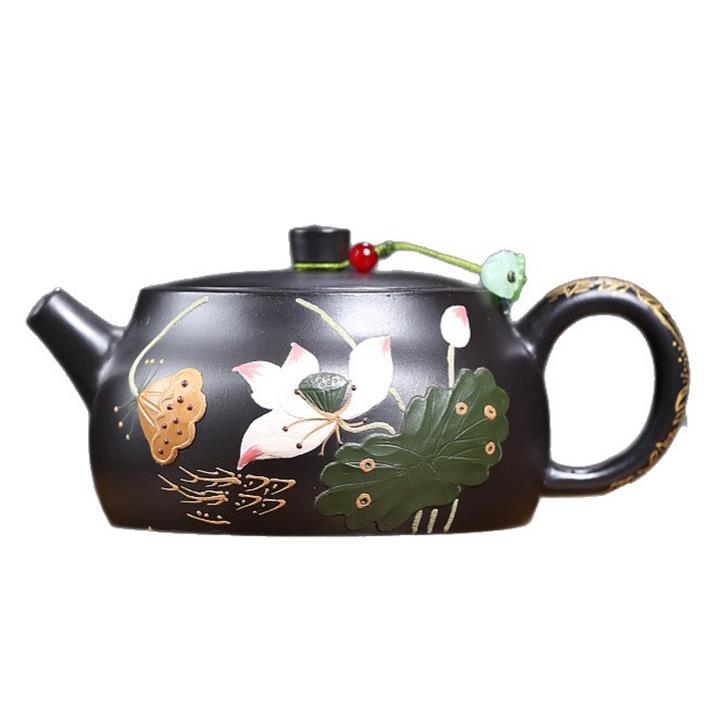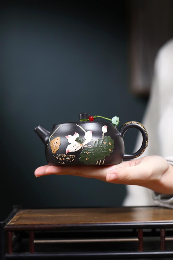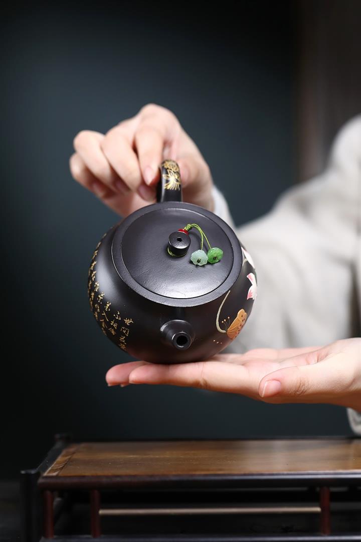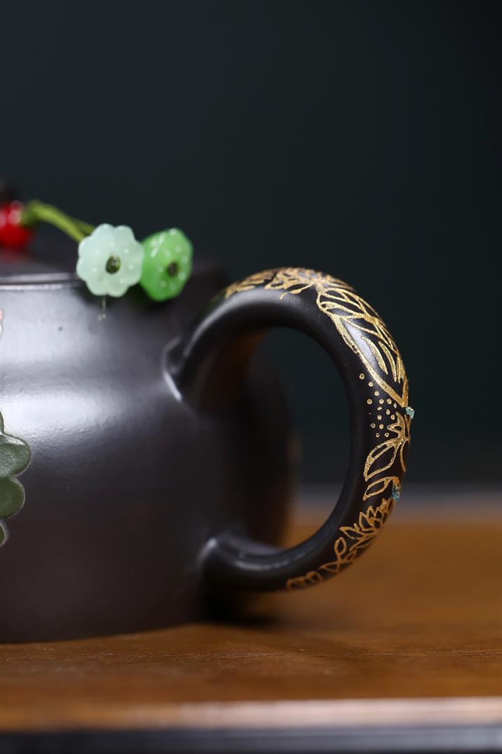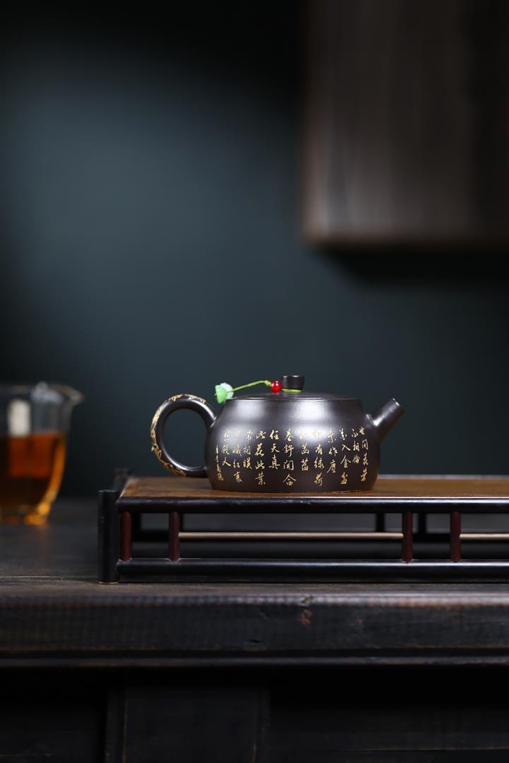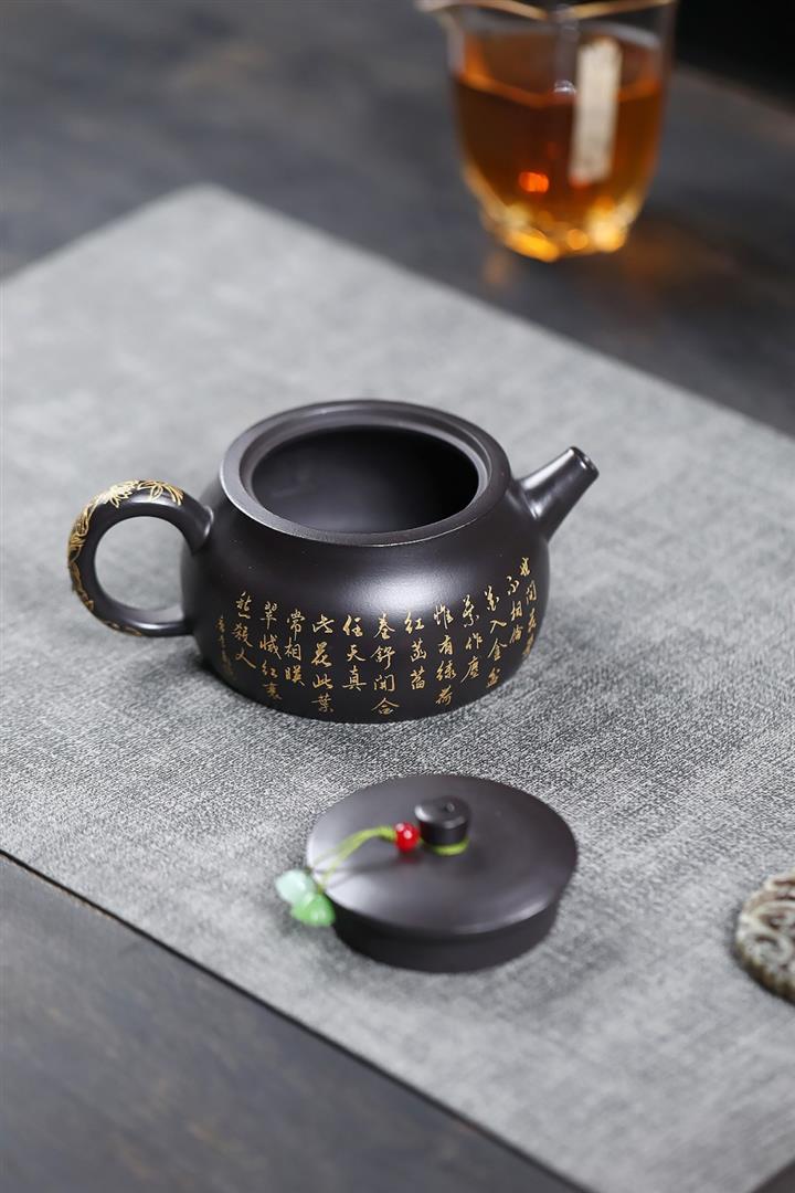 260cc原礦黑朱泥金縷井欄茶壺POT9054