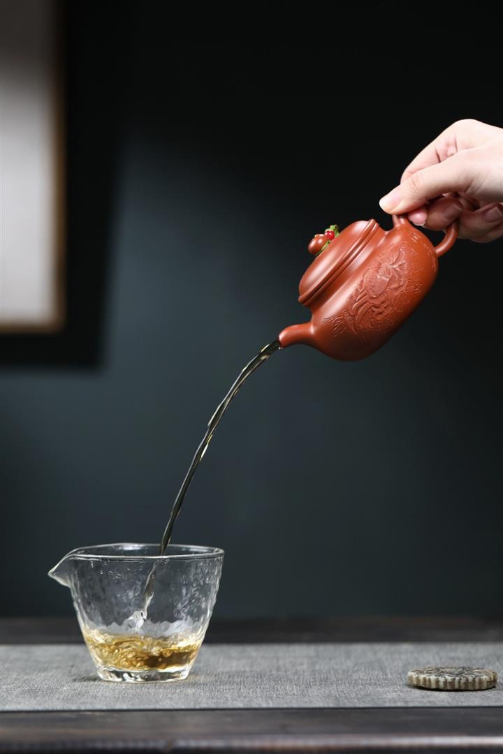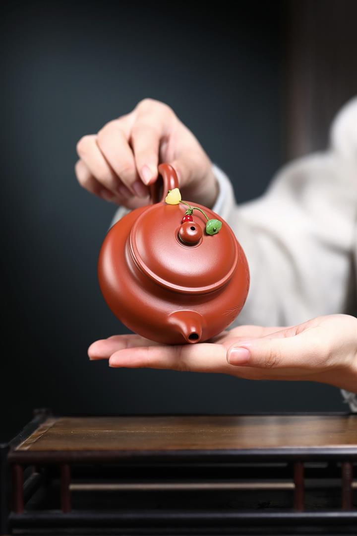 【泥料特點】砂土氣重,似淳實農民,日久使用,漸露鋒芒,養成變化,溫潤莊重。紫砂是壹種雙重氣孔結構的多孔性材質,氣孔微細,密度高。用紫砂壺沏茶,不失原味,且香不渙散,得茶之真香真味。紫砂使用越久,壺身色澤越發光亮照人,氣韻溫雅。紫砂壺長久使用器身會因撫摸擦拭,變得越發溫潤光澤。