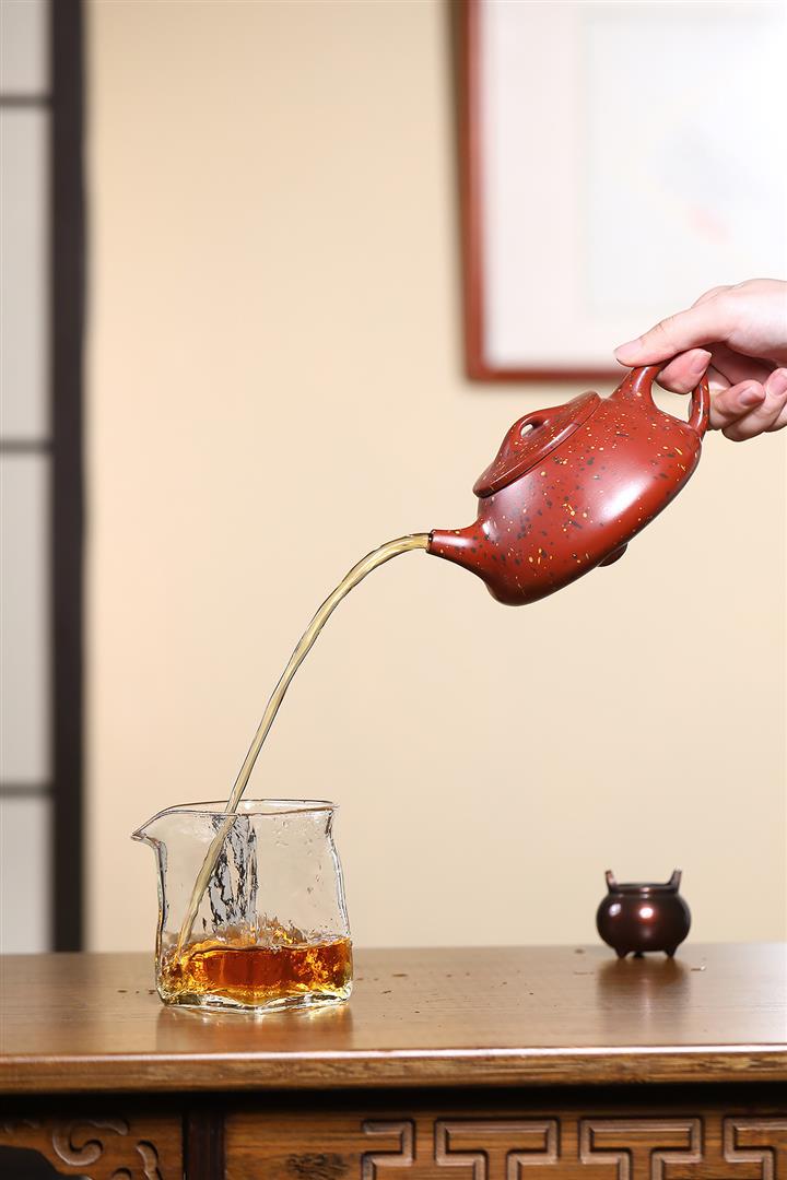 【泥料特點】砂土氣重,似淳實農民,日久使用,漸露鋒芒,養成變化,溫潤莊重。紫砂是壹種雙重氣孔結構的多孔性材質,氣孔微細,密度高。用紫砂壺沏茶,不失原味,且香不渙散,得茶之真香真味。紫砂使用越久,壺身色澤越發光亮照人,氣韻溫雅。紫砂壺長久使用器身會因撫摸擦拭,變得越發溫潤光澤。