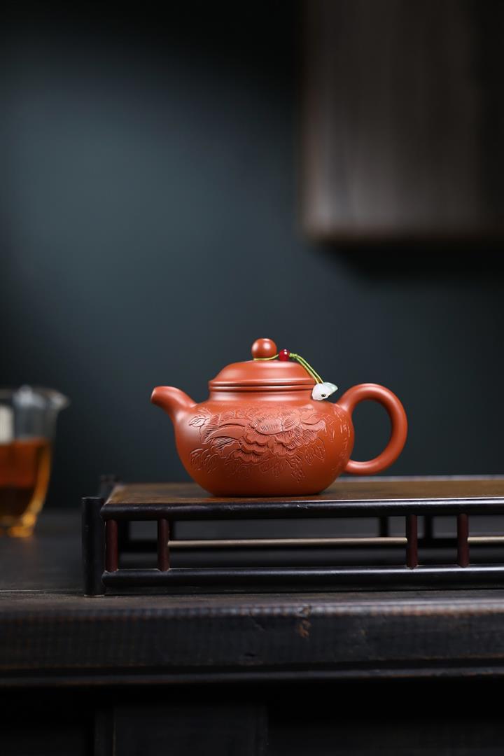 200cc原礦朱泥牡丹富貴掇只茶壺POT9078