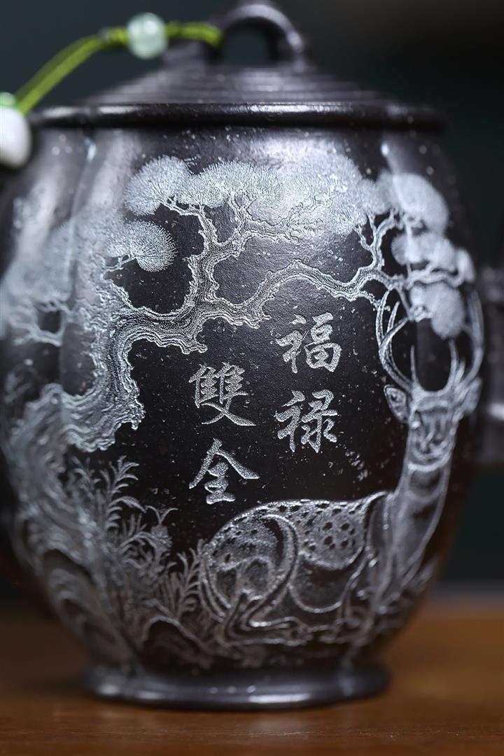 330cc原礦玄鐵星砂松鹿承禧茶壺POT9079