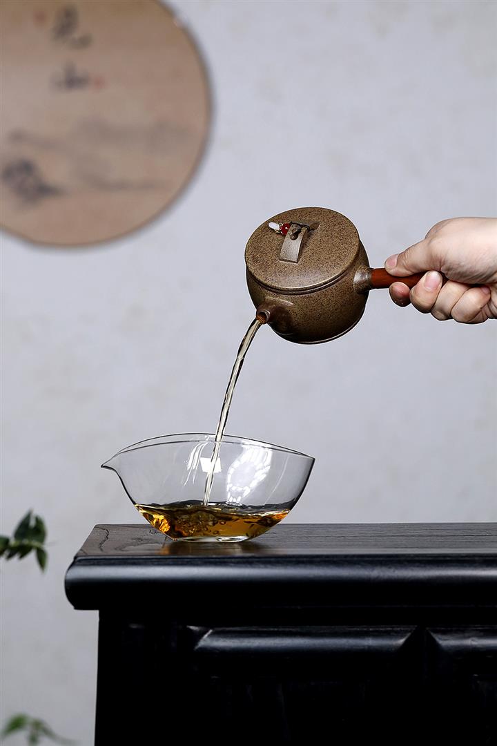 【泥料特點】砂土氣重,似淳實農民,日久使用,漸露鋒芒,養成變化,溫潤莊重。紫砂是壹種雙重氣孔結構的多孔性材質,氣孔微細,密度高。用紫砂壺沏茶,不失原味,且香不渙散,得茶之真香真味。紫砂使用越久,壺身色澤越發光亮照人,氣韻溫雅。紫砂壺長久使用器身會因撫摸擦拭,變得越發溫潤光澤。