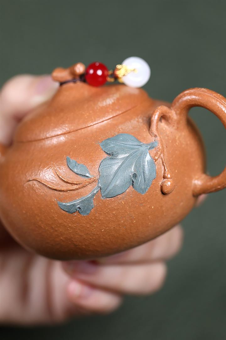 原礦墨綠泥手工滿刻提梁壺POT6720