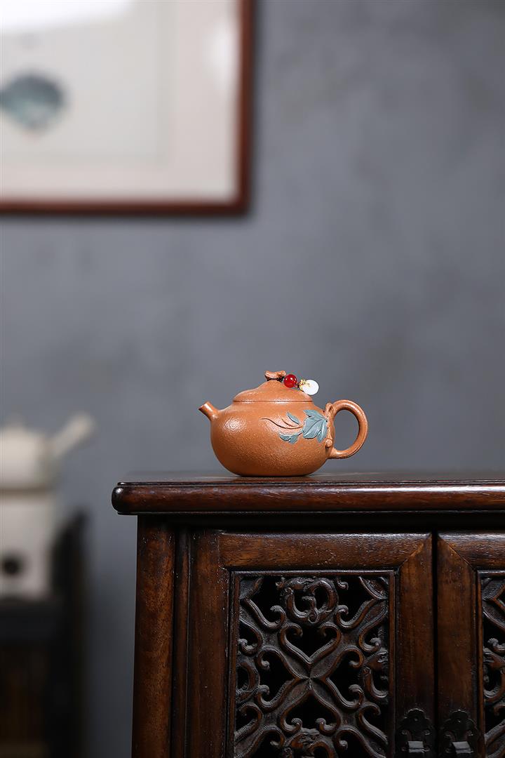 130cc原礦黃降坡柿圓小品泡茶壺POT9155