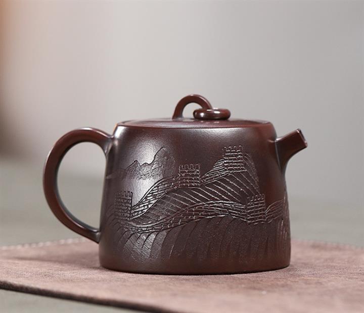260cc原礦龍山古烏泥長城井欄茶壺POT9179