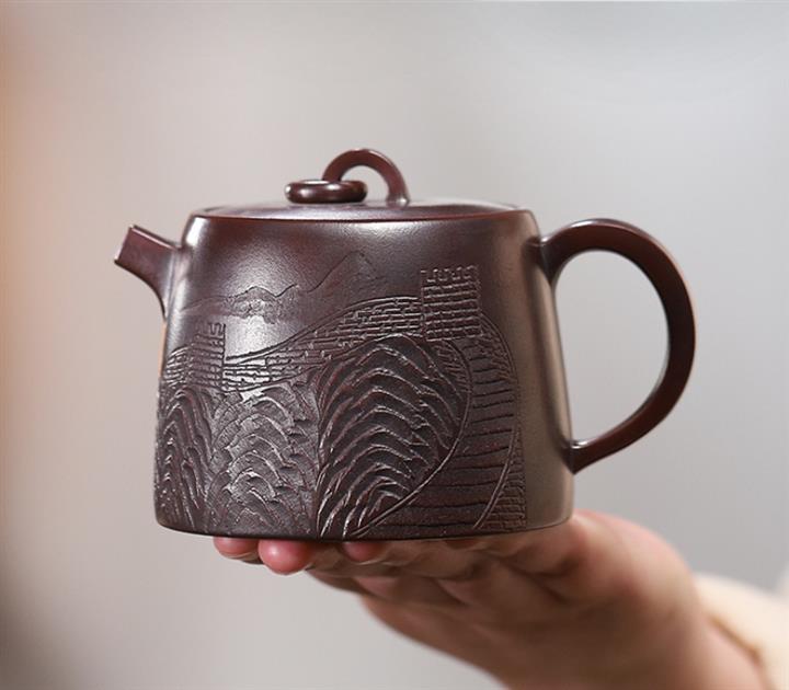 【作品介紹】此款壺形線條流暢,壺把,壺嘴,壺身壹氣呵成栩栩如生,是收藏把玩的好壺,泥料色澤古樸典雅,日久使用,漸露鋒芒,養成變化快,溫潤莊重,用其泡茶,使用的年代久,壺身就溫潤,泡出來的茶湯也就醇郁芳馨。