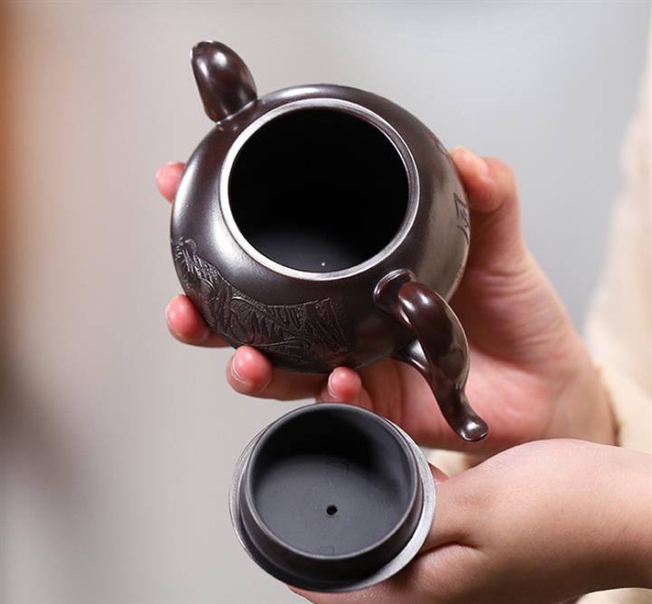 原礦黑料石黃磁吸報春茶壺POT7664