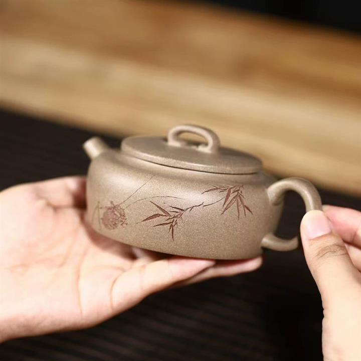 210cc原礦黃龍山青灰泥 竹段茶壺POT9189