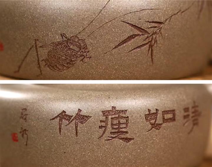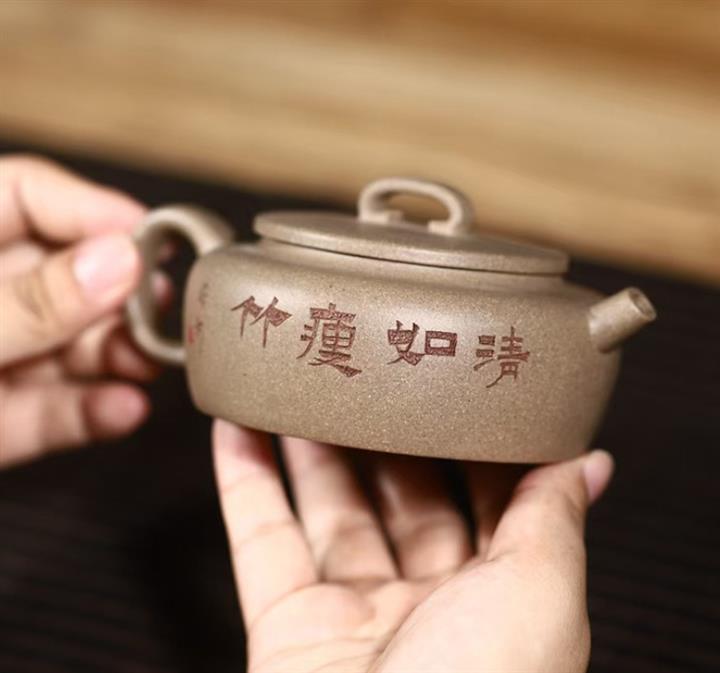 【泥料特點】砂土氣重,似淳實農民,日久使用,漸露鋒芒,養成變化,溫潤莊重。紫砂是壹種雙重氣孔結構的多孔性材質,氣孔微細,密度高。用紫砂壺沏茶,不失原味,且香不渙散,得茶之真香真味。紫砂使用越久,壺身色澤越發光亮照人,氣韻溫雅。紫砂壺長久使用器身會因撫摸擦拭,變得越發溫潤光澤。