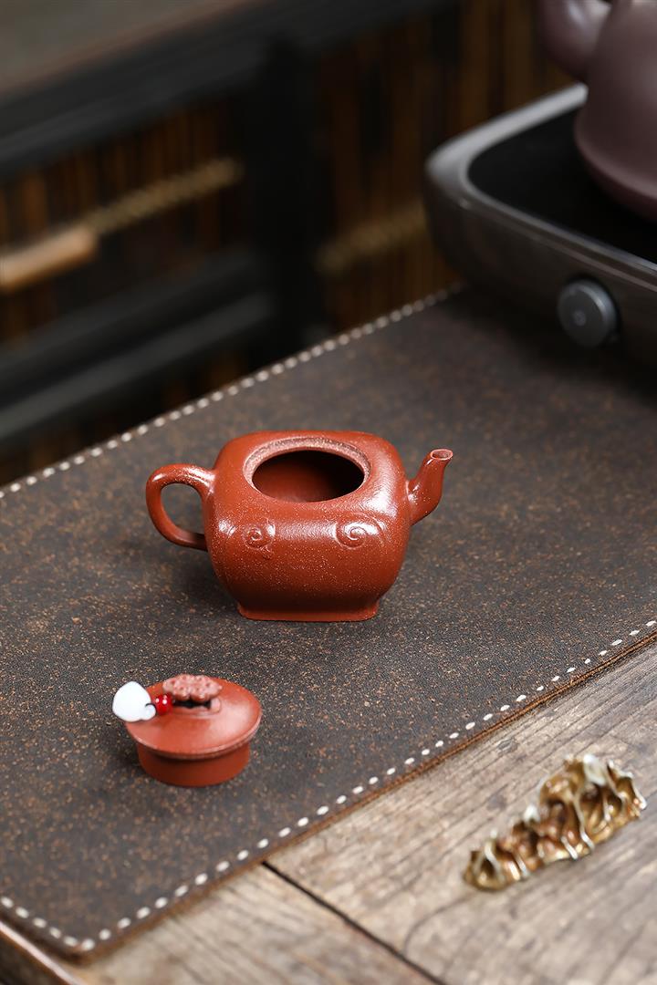 280cc原礦石紅泥滿刻松趣丹霞漢瓦茶壺POT8403