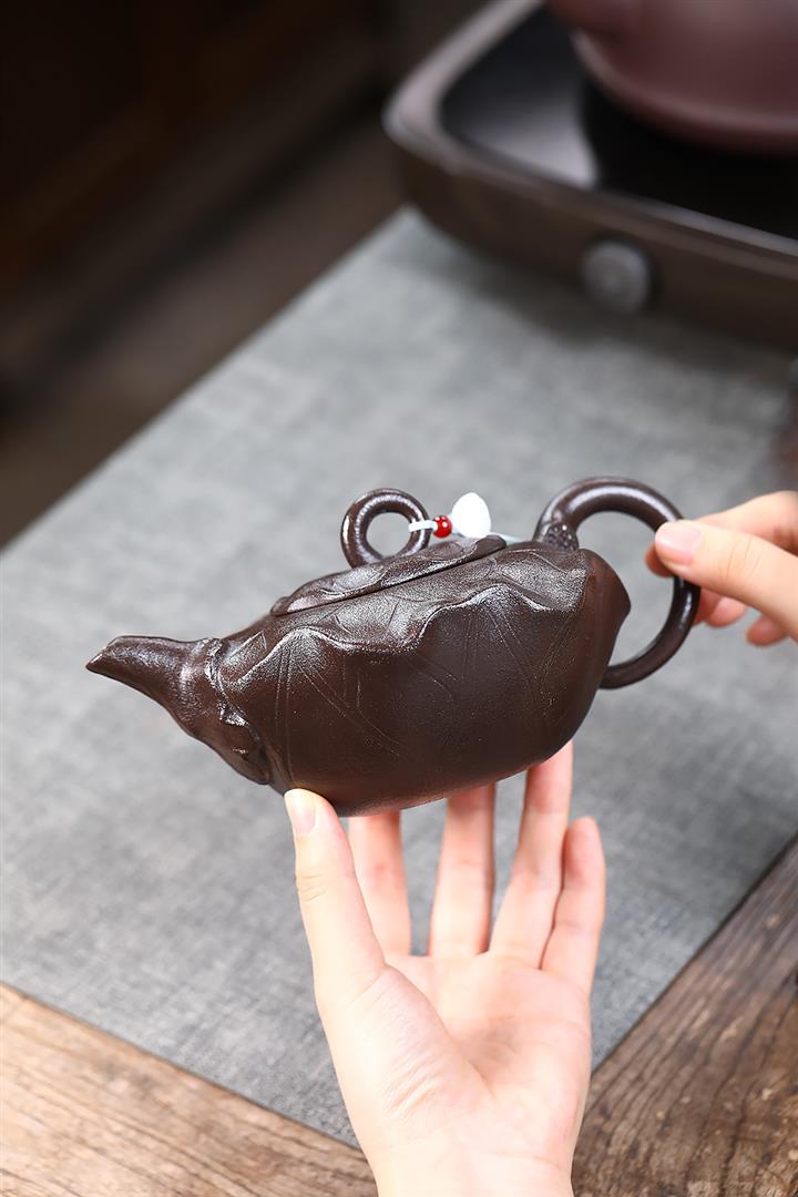 原礦墨綠泥景舟石瓢茶壺POT6999