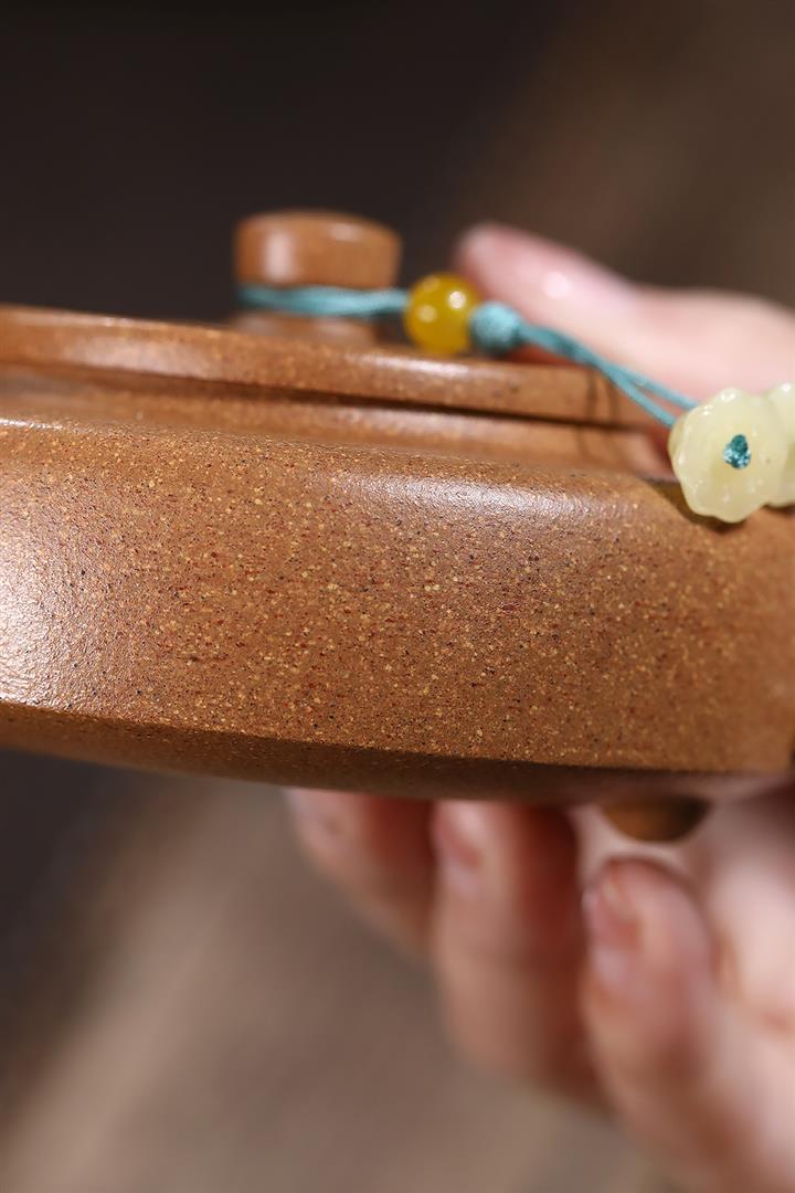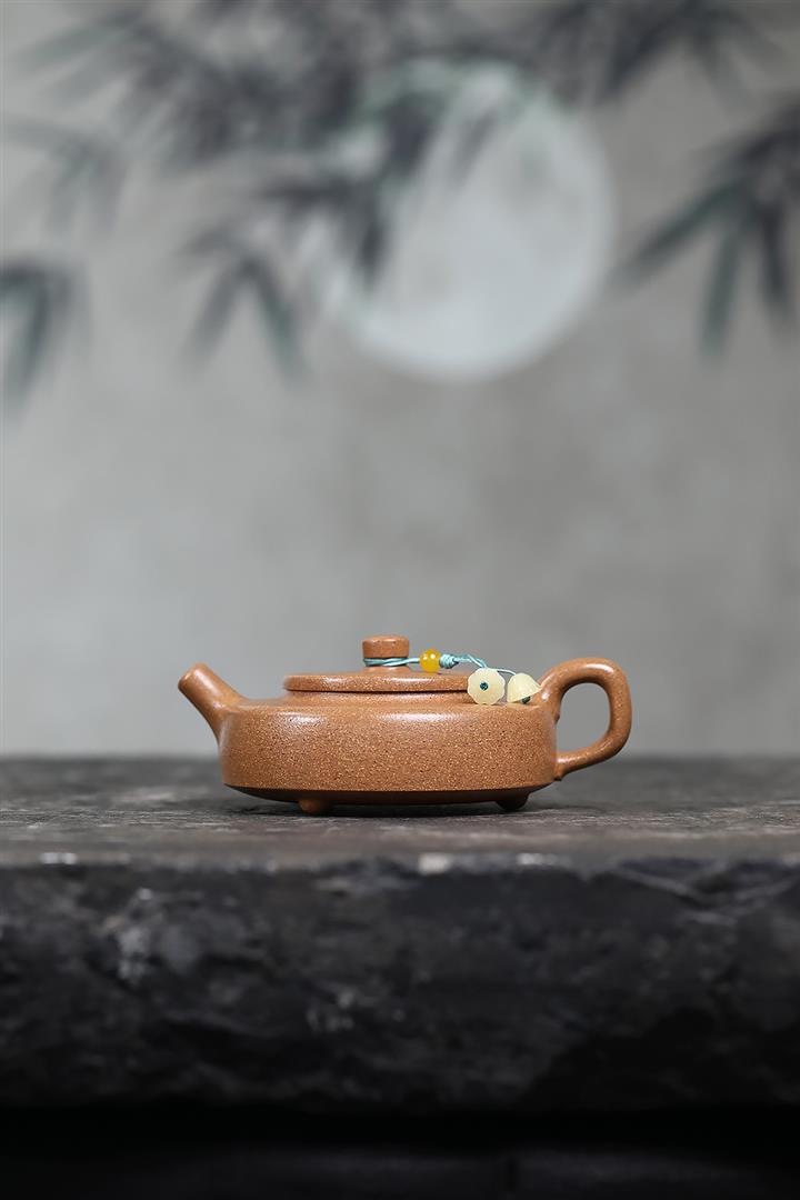 【泥料特點】砂土氣重,似淳實農民,日久使用,漸露鋒芒,養成變化,溫潤莊重。紫砂是壹種雙重氣孔結構的多孔性材質,氣孔微細,密度高。用紫砂壺沏茶,不失原味,且香不渙散,得茶之真香真味。紫砂使用越久,壺身色澤越發光亮照人,氣韻溫雅。紫砂壺長久使用器身會因撫摸擦拭,變得越發溫潤光澤。