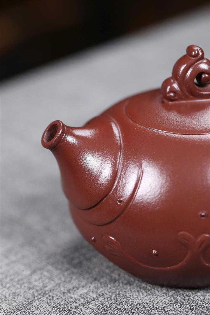 【作品介紹】此款壺形線條流暢,壺把,壺嘴,壺身壹氣呵成栩栩如生,是收藏把玩的好壺,泥料色澤古樸典雅,日久使用,漸露鋒芒,養成變化快,溫潤莊重,用其泡茶,使用的年代久,壺身就溫潤,泡出來的茶湯也就醇郁芳馨。