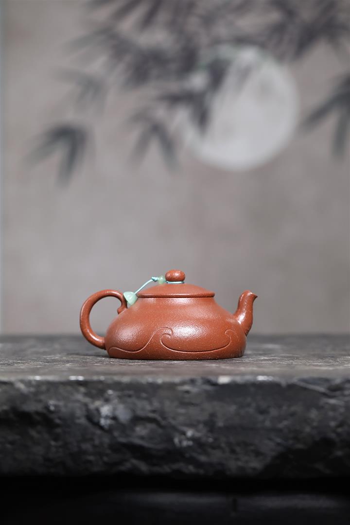 【泥料特點】砂土氣重,似淳實農民,日久使用,漸露鋒芒,養成變化,溫潤莊重。紫砂是壹種雙重氣孔結構的多孔性材質,氣孔微細,密度高。用紫砂壺沏茶,不失原味,且香不渙散,得茶之真香真味。紫砂使用越久,壺身色澤越發光亮照人,氣韻溫雅。紫砂壺長久使用器身會因撫摸擦拭,變得越發溫潤光澤。