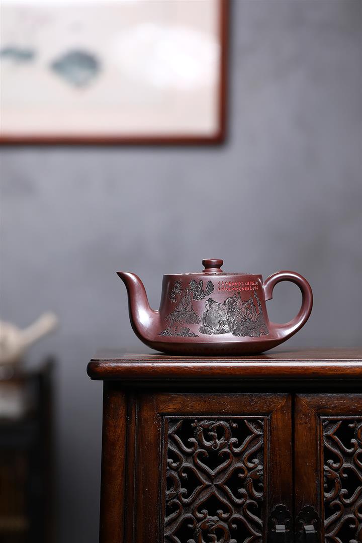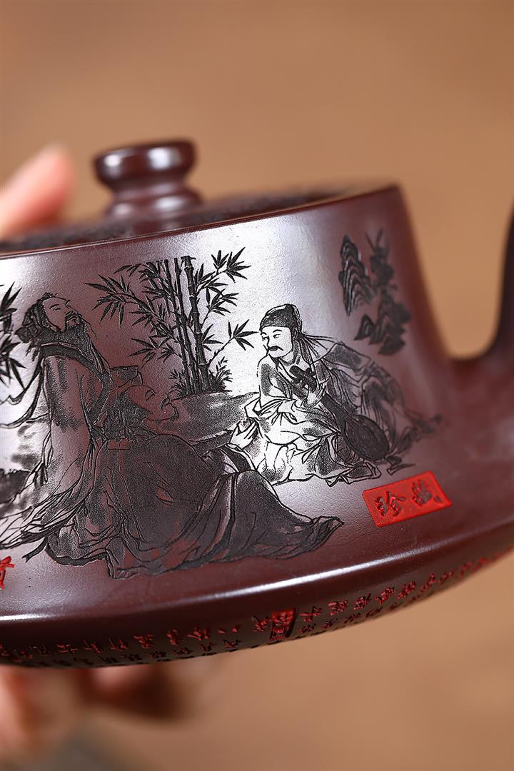 520cc原礦石紅竹林七賢曲壺泡茶壺POT9212