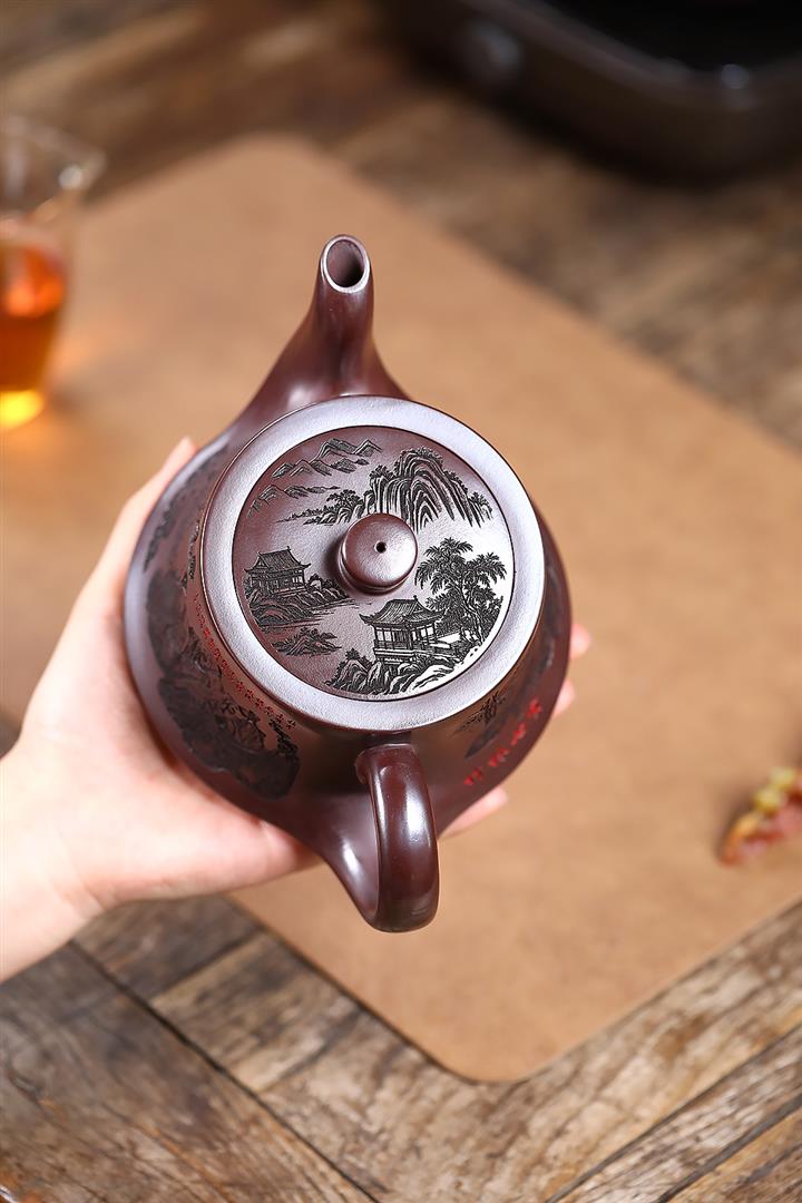 【作品介紹】此款壺形線條流暢,壺把,壺嘴,壺身壹氣呵成栩栩如生,是收藏把玩的好壺,泥料色澤古樸典雅,日久使用,漸露鋒芒,養成變化快,溫潤莊重,用其泡茶,使用的年代久,壺身就溫潤,泡出來的茶湯也就醇郁芳馨。