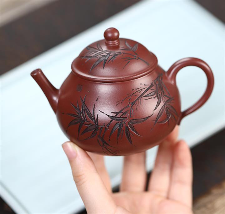 【作品介紹】此款壺形線條流暢,壺把,壺嘴,壺身壹氣呵成栩栩如生,是收藏把玩的好壺,泥料色澤古樸典雅,日久使用,漸露鋒芒,養成變化快,溫潤莊重,用其泡茶,使用的年代久,壺身就溫潤,泡出來的茶湯也就醇郁芳馨。